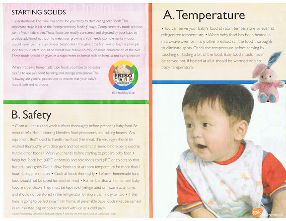 During a visit to one of Naima's former pediatricians, I was able to get an "Infant Feeding Plan" produced by our Department of Science and Technology's Food and Nutrition Research Guide.
